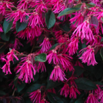 This beautiful evergreen shrub has burgundy leaves and bright fuschia-pink flowers and is great as a border or specimen. It prefers moist, well-drained, humus rich soil conditions that are slightly acidic however this shrub is adaptable to most soils. The flowers bloom year round but put on the best show late winter into spring. Best in partial shade in hotter climates. Little pruning is needed unless you wish to control the size. There are many varieties on the market such as 'Razzleberri' and 'Ever Red', there are also green leaf varieties.